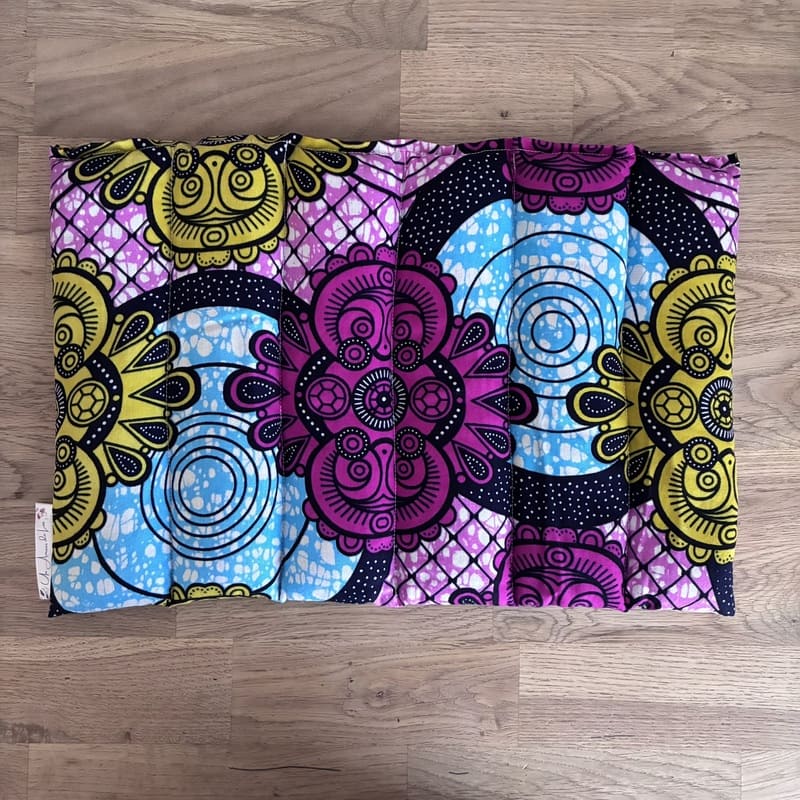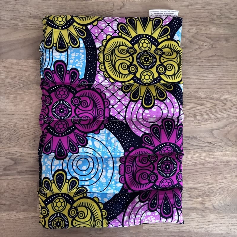 Bouillotte sèche grande taille « Le Maxi » – Tissu WAX Rose et jaune – Lin BIO