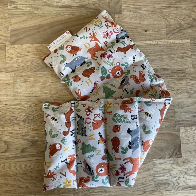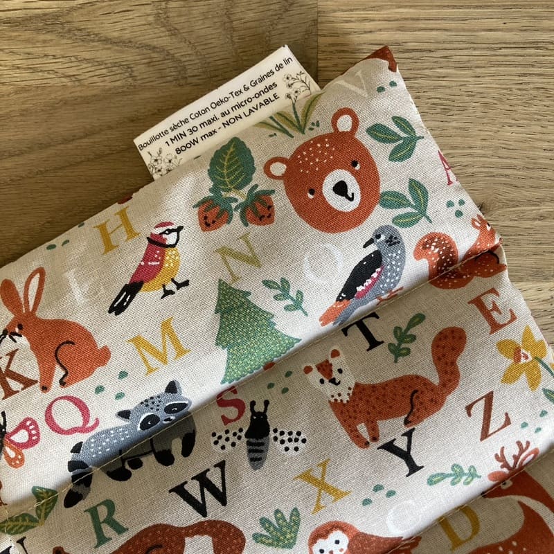 Bouillotte sèche longue « Le Chouchou » – Tissu Animaux forêt ABC