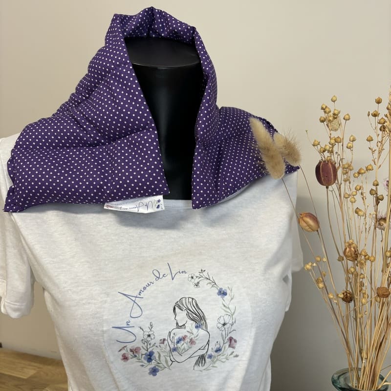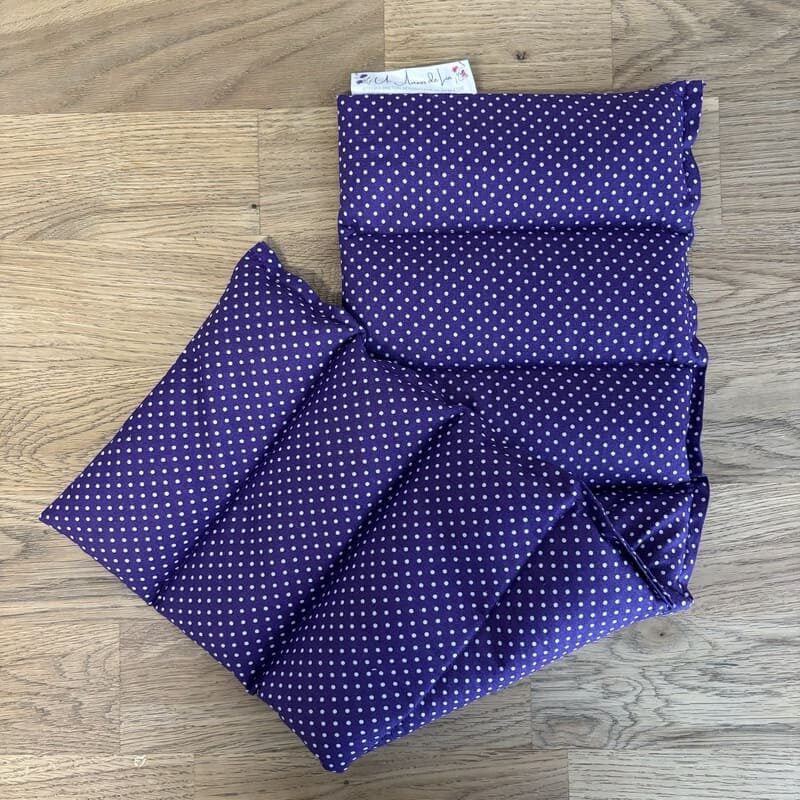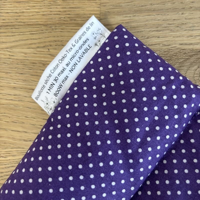 Bouillotte sèche longue « Le Chouchou » – Tissu PETITS POIS BLANCS Fond violet